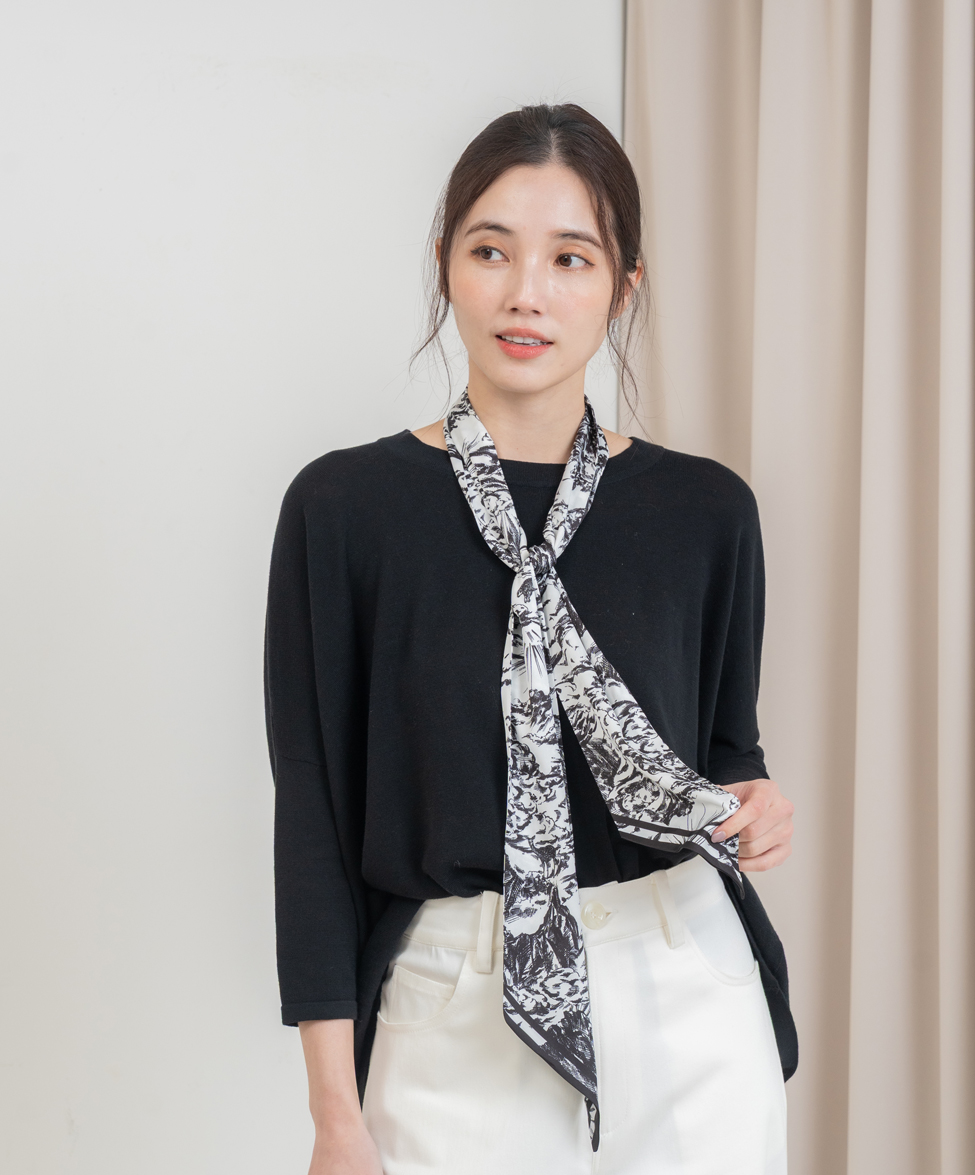 1.法式低語頸間結: 穿著簡單的 V 領純白高撚棉針織衫或復古襯衫時,將絲巾對摺成細長條狀,輕輕環繞頸部並在側邊打一個鬆散的平結。不僅能修飾頸部線條,更讓視線自然聚焦於精緻的鎖骨。